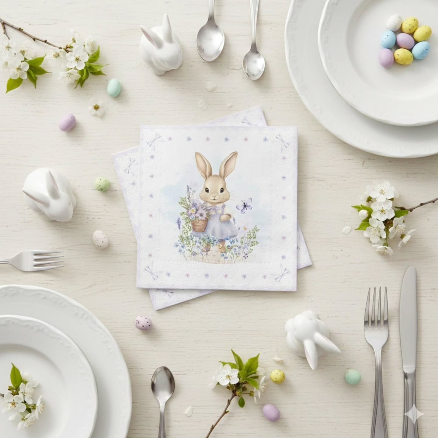 Guardanapo de Páscoa Kit 10 Decorados Jardim do Coelhinho