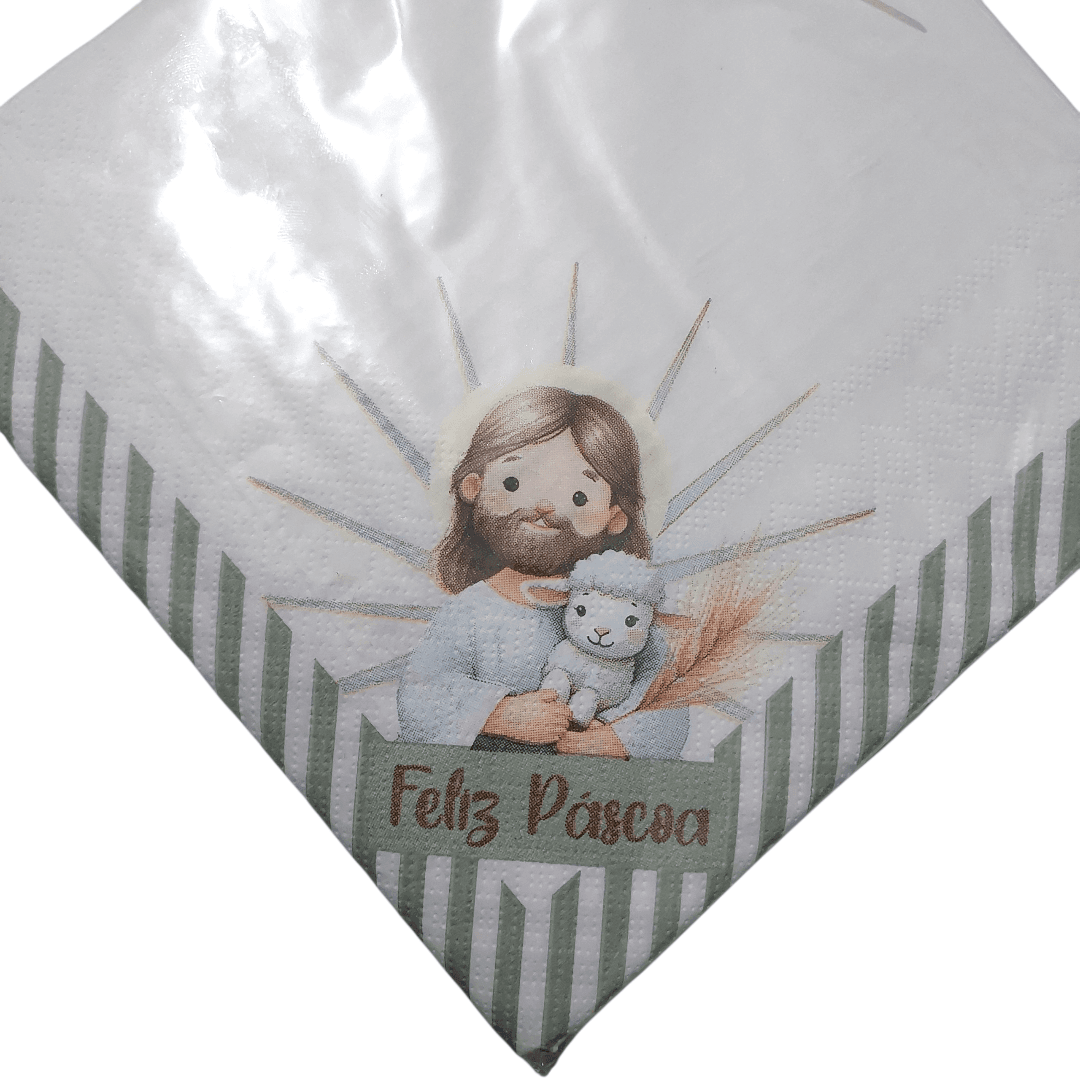 Guardanapos Decorados Páscoa Cristã – Kit 20 Unidades com Jesus 33x33cm