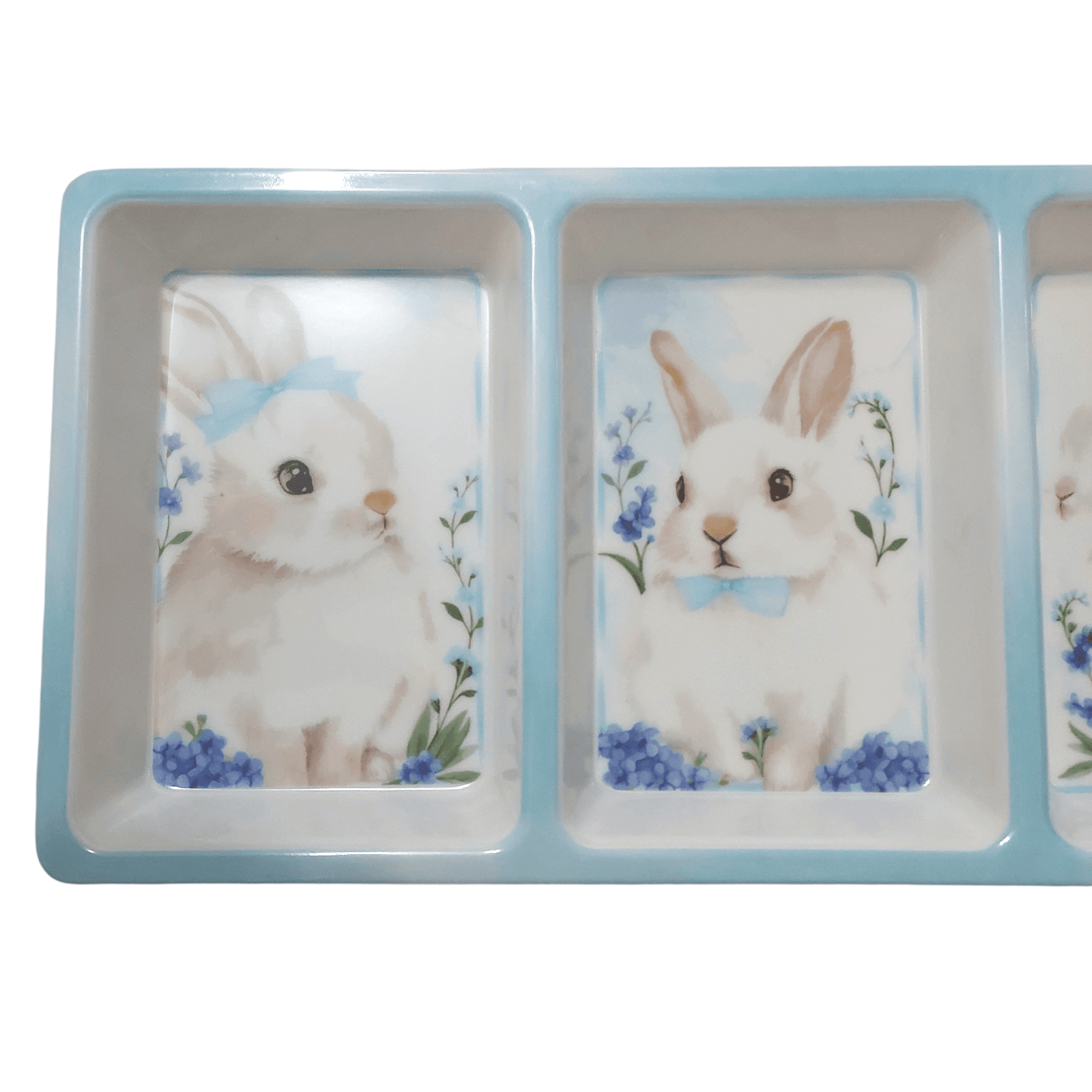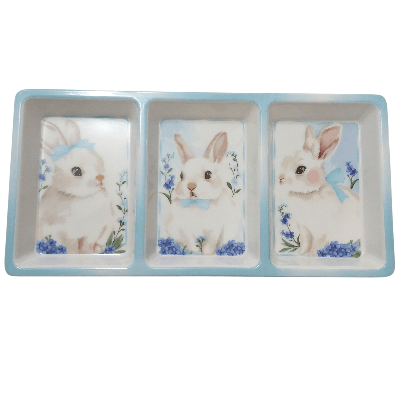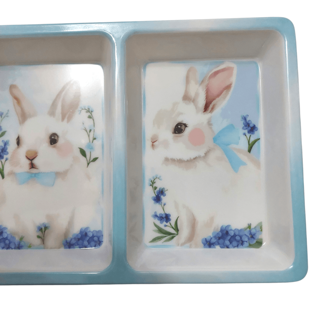 Petisqueira de Páscoa em Formato de Coelho Azul Claro com 3 Divisórias